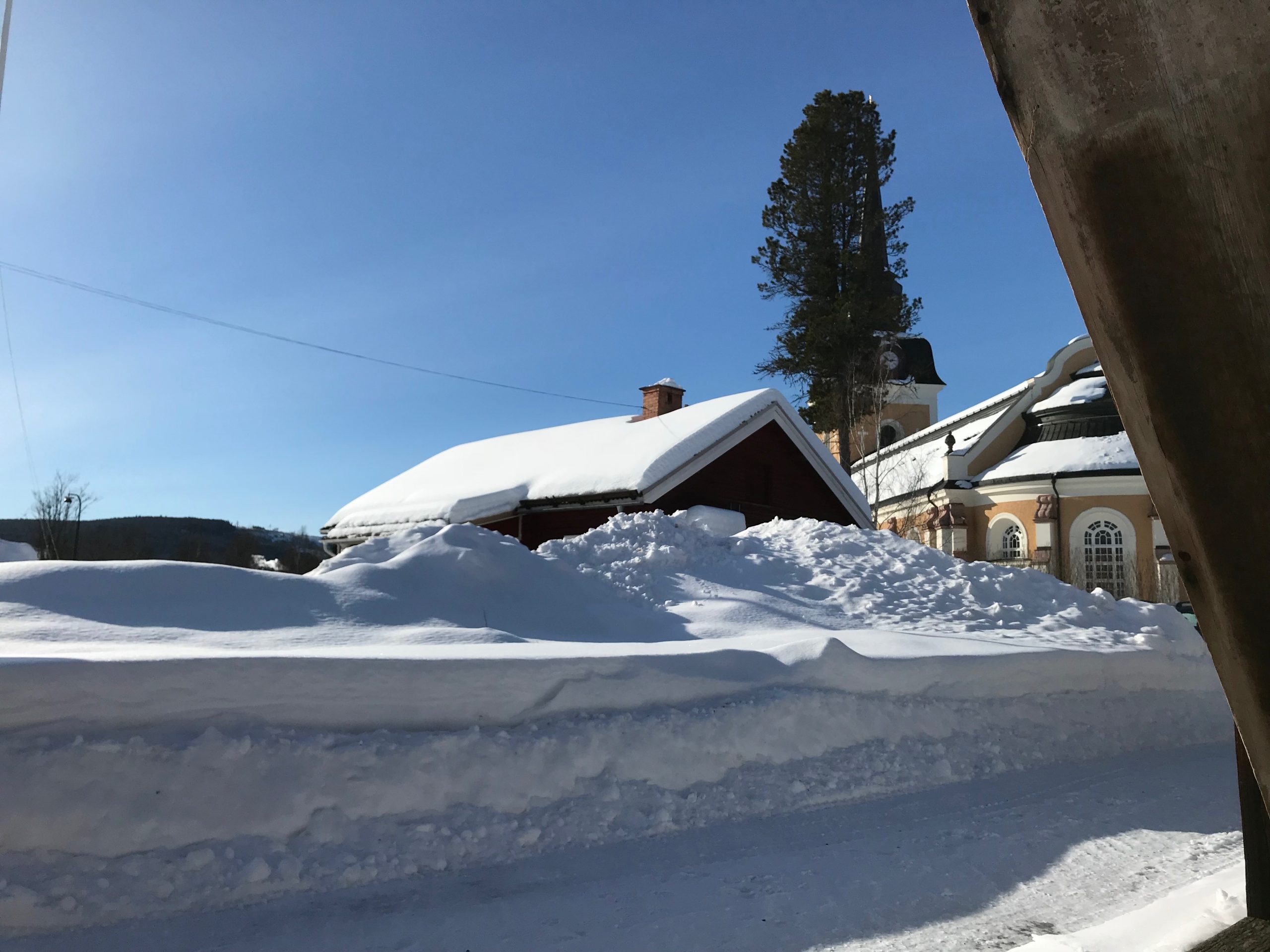 Sockenstugan bakom snöhögarna
